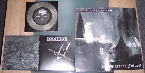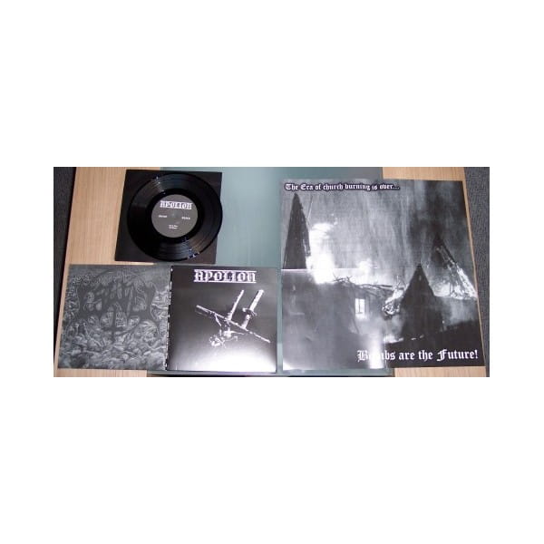 winylowy split włoskiego Apolion z norweskim Eswiel (projekt Beastcraft/Vulture Lord), surowy black metal w klasycznym skandynawskim stylu, płytka wydana w gatefoldzie na przeźroczystym i czarnym winylu, każdy limitowany do 333 egz. dodatkowo plakat